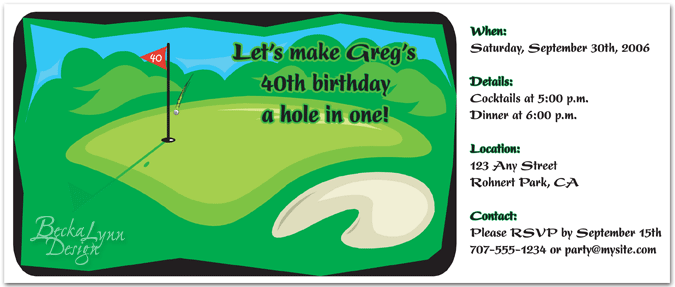 His friends called the same day they got the invitation to RSVP and commented on the clever card! It was a hit. I know they are looking forward even more to this great party because of the professionally designed card that has set the tone for our party. THANK YOU Becky for your fantastic work! We will come to you for the next party we throw!!!!"